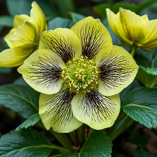 Морозник «Аква Дримс» — это воплощение изысканности и таинственной красоты. Его жёлтые цветки с чёрными прожилками, распускающиеся в зимнем саду, словно завораживающие видения, притягивают взгляд и дарят ощущение единения с природой. Представьте, как этот прекрасный морозник будет смотреться на фоне снега, словно драгоценный артефакт, сияющий в царстве зимы!